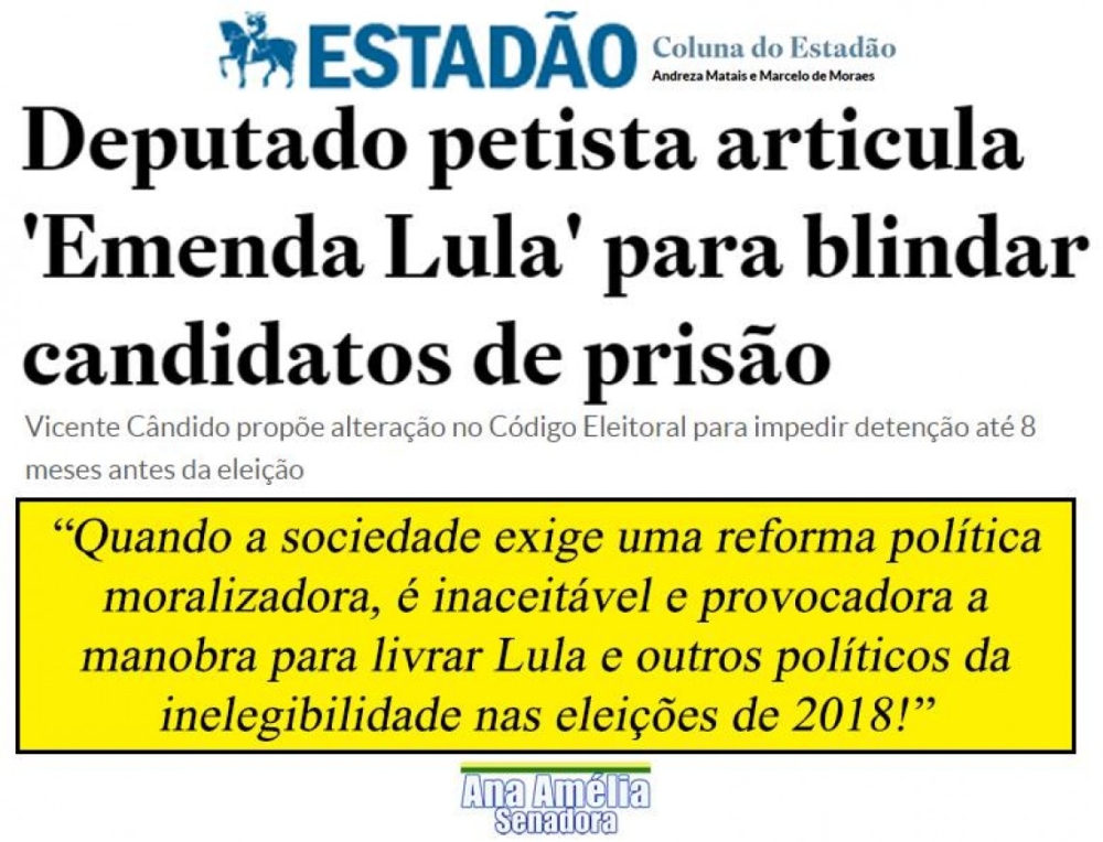 Ana Amélia critica inclusão da "Emenda Lula" na reforma política
