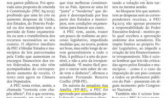 A PEC 4/2015, de autoria da senadora Ana Amélia (PP-RS), aprovada por unanimidade na semana passada pelo Senado, foi destacada nesta segunda-feira (31) em editorial do jornal O Estado de S.